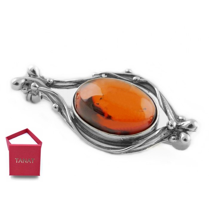 z brązowym, owalnym bursztynem.