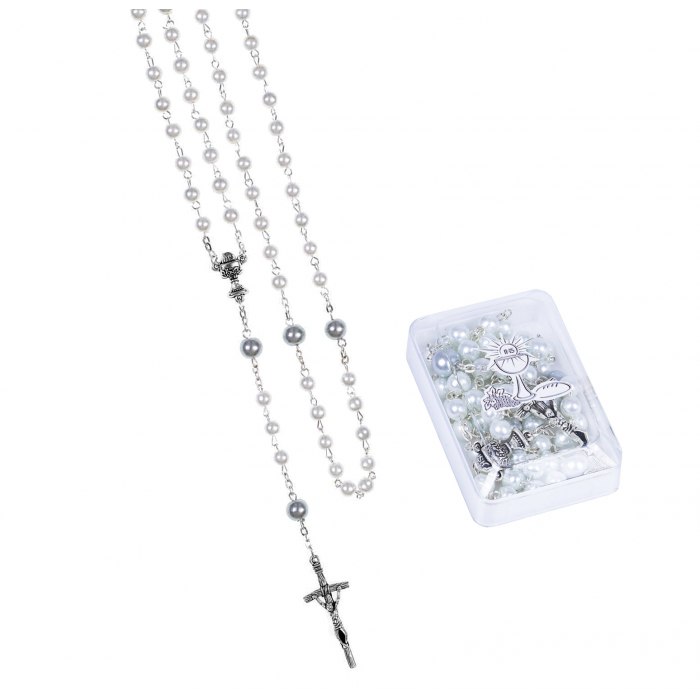 Piękny komunijny różaniec wykonany z