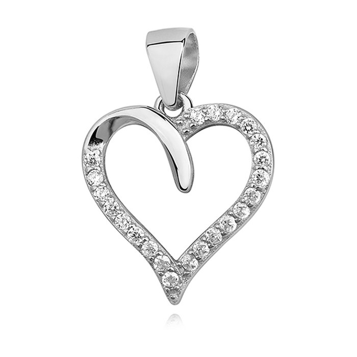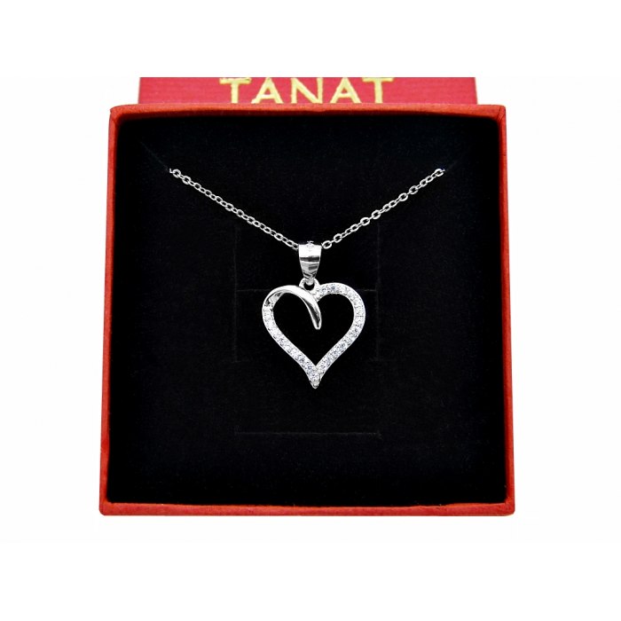 Piękny, srebrny naszyjnik z błyszczącym serduszkiem