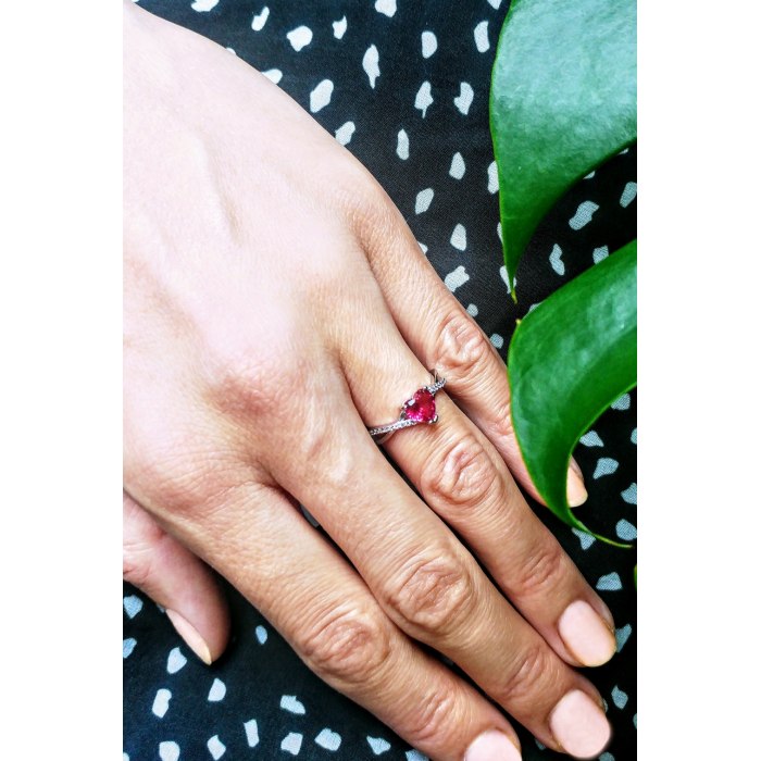 Srebrny pierścionek z rubinową