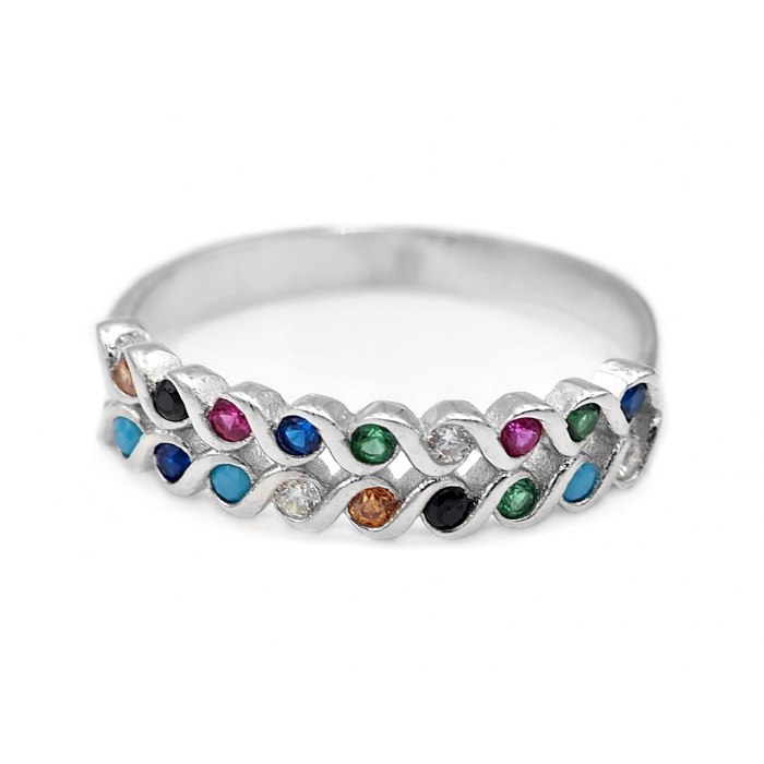 Pierścionek wykonany jest ze srebra pr 925 pokrytego cienką warstwą rodu które wyróżnia się ciemniejszym kolorem i dużym połyskiem, wyglądem zbliżone do białego złota.