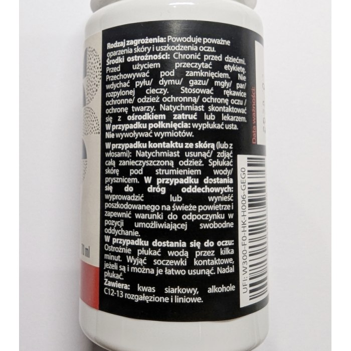 UWAGA! Środek szkodliwy. Działa drażniąco na oczy. Zanieczyszczone oczy przemyć natychmiast dużą ilością wody i zasięgnąć porady lekarza. Chronić przed dziećmi. Unikać zanieczyszczenia skóry i oczu. Nosić odpowiednią odzież ochronną i ochronne rękawiczki. Możliwe ryzyko szkodliwego działania na dziecko w łonie matki. Działa szkodliwie na organizmy wodne: nie usuwać do kanalizacji. Zawiera salicylan benzylu. Może powodować wystąpienie reakcji alergicznej.