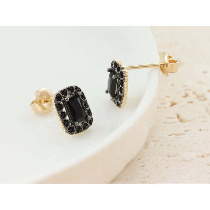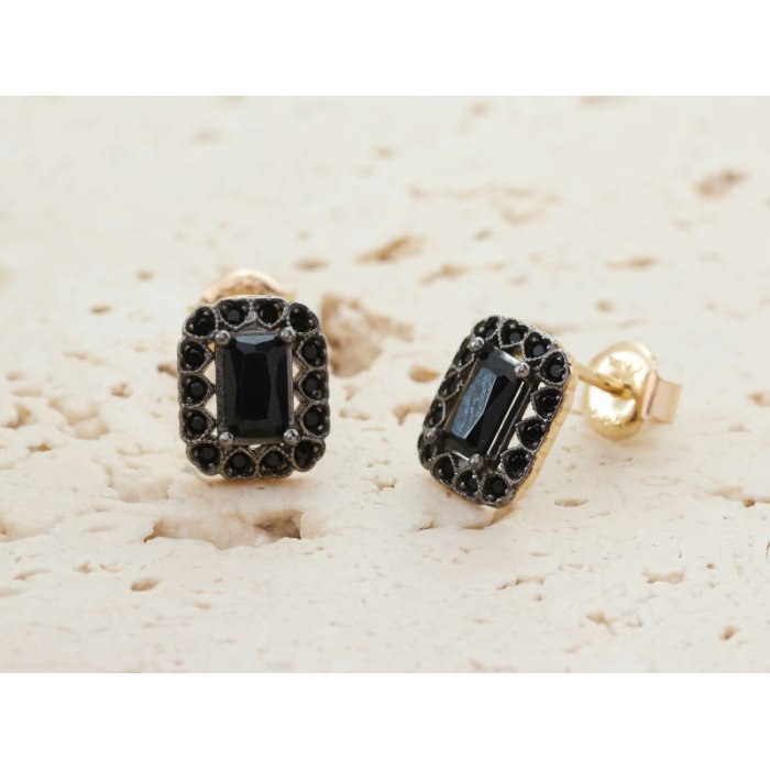 Złote kolczyki z czarną, prostokątną